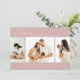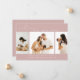 Cette simple carte de montage photo moderne est parfaite pour partager la bonne nouvelle de l'arrivée de votre bébé. Il présente un collage photo avec trois photos sur un arrière - plan rose vif. Ajoutez le nom et les statistiques de naissance de votre bébé pour personnaliser la carte.