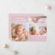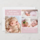 Modern Simple Blush Pink Baby Girl Faire-part de naissance Annoncez l'arrivée de votre bébé avec ce faire-part de naissance moderne et simple à double face. Avant dispose d'espace pour 4 photos de votre petite fille avec calligraphie blanche Le pois rose et blanc à l'arrière comprend de l'espace pour une photo de famille et une mignonne plaque d'identification de famille Tout le texte est facilement customisé.