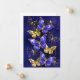 Composition des luxueux papillons saphir et bijoux en or sur arrière - plan bleu texturé.