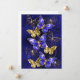 Composition des luxueux papillons saphir et bijoux en or sur arrière - plan bleu texturé.