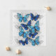 Vertical composition of réalistes, blue and white morpho butterflies on gray textured background. Morphine bleu.