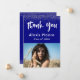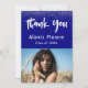 Express votre gratitude avec ces cartes de remerciement modernes. Il suffit de remplacer la photo du porte-espace par un portrait de votre diplômé spécial (ou un simple instantané amusant). /// De part et d'autre, j'ai placé des confettis argentés pour une sensation de fête. Votre nom et votre année de classe sont rendus dans une police moderne en blanc ; utilisez simplement les champs modèles pour remplacer le mien par le vôtre. J'ai créé un graphique en utilisant une police manuscrite amusante et audacieuse de ma collection. Les mots "Merci" sont une image qui peut être repositionnée et redimensionnée comme vous le souhaitez. L'arrière - plan est marine et cela peut être changé à n'importe quelle autre couleur si vous préférez une autre. Félicitations pour votre réussite ! //// Conçu par Melody Watson pour Paper Muserie. //// Photo du titulaire de la place par Larisa Birta.