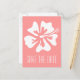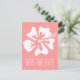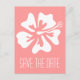 Corail enregistrer la date carte postale avec fleur Hibiscus. Nice enregistrer la carte de date pour destination mariage plage, fête de retraite ou lune de miel à Hawaii. Illustration florale tropicale blanche avec couleur arrière - plan rose corail qui est personnalisable.
