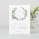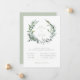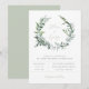 Belle couronne de feuillage botanique à l'aquarelle dans des tons de sauge poussiéreuse, invitation de mariage. Design typographique moderne et chic gris et sauge. Le dos de la carte présente une couleur unie en vert sauge poussiéreux, qui peut être personnalisée.