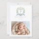 This sweet baby announcement is a perfect way to announce the arrival of your new baby. The design features a monogram crest with a blue ribbon and a cute puppy. Introduce your baby with the details of your new baby's special day and a newborn photo. The back of the announcement has a blue gingham pattern.