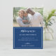 Célébrez l'arrivée de votre fils avec cette carte faire-part d'adoption douce. Doté d'un arrière - plan bleu marine avec d'élégantes polices de serif et de script, et d'une conception marine et de bandes blanches sur le dos avec les mots : "Pas la chair de ma chair, ni les os de mes os, mais à travers le plan de Dieu, miraculeusement la nôtre." Tout le texte est personnalisable.