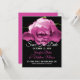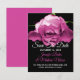 Magnifique annonce de Save the Date de mariage avec une photographie d'une floraison de rose rose recouverte de rosée, sur fond noir. Personnalisez le texte en fonction de vos besoins. Excellent moyen de prévenir tout le monde bien à l'avance de votre mariage à destination.