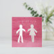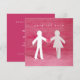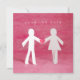 Faire-part de mariage personnalisable 'Enregistrez la date' / invitation avec des personnages en papier découpé - joli garçon et fille se tenant la main et cœur sur fond rose.