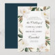 Ce design présente un cadre floral avec des fleurs de magnolia et du texte au milieu. Le dos bleu marine se complète bien avec les fleurs aquarelles et le feuillage vert. Le texte et la couleur peuvent être modifiés.