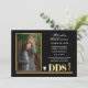 Texte doré élégant et raffiné "DDS" (Docteur en chirurgie dentaire) Bâton d'Asclépios, modèle d'annonce de remise de diplôme de dentiste conçu par Holiday Hearts Designs (droits réservés). Photo modèle de l'espace réservé avec l'aimable autorisation d'Unsplash.