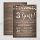 Invitation 3e anniversaire de mariage. Fond en bois rustique. Guirlande lumineuse. 1re, 2e, 3e, 4e, 5e, 10e, 15e, 20e, 25e, 30e, 35e, 40e, 45e, 50e, 55e, 60e, 65e, 70e, 75e, 80e, Toutes années. Anniversaire adulte. Fête d'anniversaire pour homme ou femme. Pour une personnalisation supplémentaire, veuillez cliquer sur le bouton "Personnaliser" et utiliser notre outil de conception pour modifier ce modèle.
