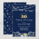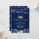Faire-part d'anniversaire de mariage Navy & Or Jardin de Nuit. Belle typographie dorée, guirlande de lumières et couronne de fleurs.