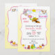Cette invitation de baby shower adorable présente une petite abeille mignonne entourée de fleurs douces et de jouets ludiques, créant un design doux et joyeux pour célébrer une bébé fille. Les accents floraux délicats et les détails fantaisistes la rendent parfaite pour une baby shower sur le thème du printemps ou du jardin. Personnalisez le texte avec vos détails d'événement pour créer une invitation charmante pour vos amis et votre famille.