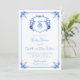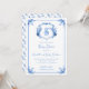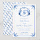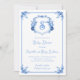 Personnalisez ce faire-part de baby shower blason monogramme floral bleu aquarelle élégant et fantaisiste avec vos propres détails. Parfait pour une célébration de baby shower "c'est un garçon".