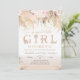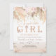 Faire-part de Baby Shower Bohème Fille Modifiable avec Herbe de Pampas Rose - Invitation de Baby Shower Bohème Fille à Imprimer
