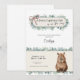 Accueillez votre petit avec ce charmant Faire-part de Baby Shower Capybara. Avec un capybara aquarelle doux avec un nœud rose et des accents de verdure, ce design apporte une touche de charme naturel et délicat à votre célébration. Parfait pour les baby showers dans la forêt ou neutres. Personnalisez le texte avec le nom, la date, l'heure, l'adresse et la réponse.