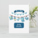 Cette invitation présente les mots "C'est un garçon Baby Shower" dans une police d'impression unique avec des lettres blanches sur fond bleu avec des vêtements sur une ligne dans le thème et le style de ce bébé garçon. Imprimé sur un papier classique de 17,5 pt d'épaisseur avec une finition mate non couchée avec une texture de coquille d'œuf fabriqué et imprimé aux États-Unis avec "C'est un garçon" imprimé au dos.