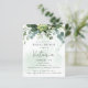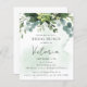 Cette invitation de baby shower élégante et moderne présente un magnifique dessin d'eucalyptus à l'aquarelle dans des nuances de vert, de gris et de blanc qui capture parfaitement la beauté de la nature.