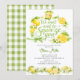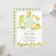 Célébrez votre petit avec cette charmante invitation de baby shower au citron présentant de doux citrons à l'aquarelle, des florales délicates et un fond à carreaux vert frais. La phrase ludique « Nous ne pouvons pas attendre de vous serrer dans nos bras » fait de ce design un choix parfait pour un baby shower sur le thème des agrumes, une célébration estivale ou un thème de baby shower neutre en matière de sexe.