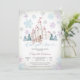 Célébrez un moment magique avec cette invitation de baby shower féerique et enchanteresse. Avec son château fantaisiste aux toits roses, son carrosse royal et ses flocons de neige pastel en bleu, violet et argent, ce design capture un thème de merveilleux pays des merveilles hivernal. Parfait pour honorer les futures mamans, cette carte élégante allie le charme des contes de fées à la beauté saisonnière, ce qui la rend idéale pour les célébrations inspirées par les princesses. Personnalisez-la avec vos détails pour créer un souvenir unique que vos invités adoreront.