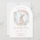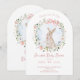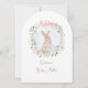 Cette invitation de baby shower neutre en genre présente une délicate couronne de fleurs sauvages douces entrelacée d'un lapin de style conte de fées dans des tons aquarelles doux. Vous pouvez facilement remplir le modèle avec vos propres détails ou aller plus loin dans l'édition pour changer le style de police, la taille, la couleur et l'emplacement si vous le souhaitez.