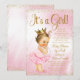 Invitation de baby shower par courrier avec une adorable princesse bébé fille brune portant un tutu rose froufroutant et une couronne dorée avec un collier de perles sur un beau fond rose et or. Cette élégante invitation de baby shower par courrier rose et or est facilement personnalisable pour votre événement en ajoutant vos détails dans le style de police et la couleur et le libellé de votre choix.