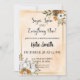 Invitation pour Baby Shower d'Automne – Aquarelle pêche, cadre doré et citrouilles florales d'automne (Modèle entièrement personnalisable)