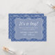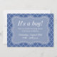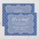 Faire-part de baby shower élégants pour future maman. | Invitations personnalisées. Texte d'annonce personnalisé et couleur de fond. Design bleu et blanc avec un beau motif à quatre feuilles. C'est un garçon !