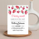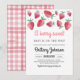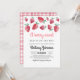 Célébrez l'arrivée de votre nouveau-né avec cette invitation "Bébé sucré aux fruits sur le chemin", mettant en vedette de charmantes illustrations de fraises et des accents rose pâle. Ce design charmant est parfait pour une baby shower estivale ou sur le thème des fruits pour fille, alliant l'ambiance rustique de jardin avec une typographie moderne. Personnalisez facilement les détails pour créer un souvenir unique qui fera que vos invités seront ravis de célébrer votre "petite baie".