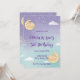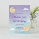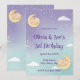 Invitation pour une Baby Shower pour des jumeaux Animaux endormis Lune Étoiles Violet Menthe