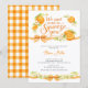 Cette invitation de baby shower Little Cutie présente des oranges aquarelles, des florales douces et des nœuds gingham jaunes dans un design inspiré des agrumes doux. Parfait pour une baby shower orange, une baby shower sur le thème des agrumes, une baby shower On a hâte de vous serrer dans nos bras, une baby shower d'été ou une baby shower neutre. Cette invitation de baby shower sur le thème des fruits a un look joyeux, frais et élégant qui est parfait pour une célébration chic de little cutie.