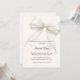 Un fond ivoire doux, orné d'un grand nœud blanc avec perles. Élégant et neutre. Personnalisez et ajoutez un nom et les détails de la fête.