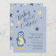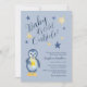 Organisez la plus adorable baby shower de pingouin d'hiver avec ces invitations personnalisées de baby shower de pingouin bleu arctique. Ces invitations de baby shower de pingouin sont entièrement personnalisables ! Vous pouvez modifier le texte en cliquant sur "personnaliser ce modèle". Cette invitation de baby shower de pingouin dit "Bébé, il fait froid dehors" qui est entouré de jolies étoiles bleues et jaunes texturées. Une illustration peinte à la main d'un mignon pingouin tenant une étoile est située dans le coin et est une œuvre originale de OhMyStarling et un motif d'étoiles bleu, blanc et jaune dessiné à la main orne le dos de la carte. Ces cartes sont parfaites pour les baby showers d'hiver et sont neutres en termes de sexe !