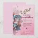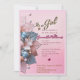 Une invitation de baby shower pour bébé fille plate avec un fond rose doux, des florales métalliques élégantes et une typographie raffinée. La mise en page met en évidence les détails de l'événement de manière claire tout en maintenant une atmosphère douce et festive. Parfait pour les baby showers, les révélations de sexe et l'accueil d'une nouvelle petite fille. Entièrement personnalisable avec les noms, dates et informations sur le lieu.