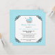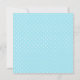 Faire-part de baby shower chic carré, avec une touche vintage, réalisé dans un motif à pois bleu clair et blanc, avec des graphiques de zone de texte carrée blanche encadrée ornée de gris foncé. Un landau bleu clair de style vintage décore le haut de la zone de texte. Personnalisez le texte pour votre baby shower. Des assiettes en papier, des serviettes et des timbres-poste assortis sont disponibles.
