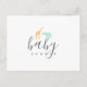 La carte postale d'invitation de baby shower magnifiquement conçue mettant en vedette une girafe à l'aquarelle en orange et un éléphant en bleu. La typographie moderne et script est utilisée. Ajoutez votre message personnel au verso. Vous pouvez personnaliser le style de typographie et la couleur. Envoyez-moi un message si vous avez besoin d'aide ou si vous avez des demandes spéciales.