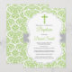 Faire-part de baptême. Damas vert et gris. Baptême fille ou garçon. Première communion. Baptême. Dédicace d'enfant. Pour une personnalisation plus poussée, veuillez cliquer sur le bouton "Personnaliser" et utiliser notre outil de conception pour modifier ce modèle.
