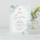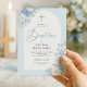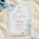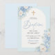 Invitez vos proches à un moment émouvant avec ce faire-part de baptême élégant pour garçons. Avec des florales aquarelles douces dans des nuances de bleu, une mise en page arquée et une croix dorée scintillante, ce design allie tradition et style moderne. Idéal pour les baptêmes, les christeinings ou les dédicaces, et entièrement personnalisable pour correspondre aux détails de votre événement.
