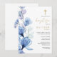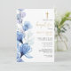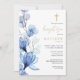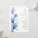 Ce faire-part de baptême floral transparent bleu poussiéreux élégant peut être personnalisé avec vos informations en typographie chic avec votre monogramme au verso. Conçu par Thisisnotme