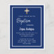 Faire-part de baptême bleu marine blanc garçon or