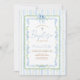Caractérisé par des fleurs bleues à l'aquarelle, de la verdure feuillue, un nœud ruban délicat et des accents de croix classiques, le tout encadré par des rayures de sauge et de bleu pour un look frais et intemporel.
