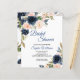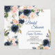 La conception comporte de beaux éléments floraux à l'aquarelle dans des nuances de bleu marine, de rose saumon et plus encore sur la verdure d'eucalyptus, des éléments de feuilles et plus encore dans les dessins de feuilles en ligne.