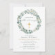 Faire-part de baptême à couronne florale d'eucalyptus | Modèle élégant de cérémonie religieuse de verdure. Invitez la famille et les amis à célébrer le jour sacré du baptême de votre enfant avec ce faire-part élégant à couronne florale d'eucalyptus. Avec sa verdure délicate aquarelle et ses accents floraux doux, ce modèle personnalisable est parfait pour les cérémonies de baptême chrétiennes, catholiques et protestantes. Personnalisez-le avec le nom de votre enfant, la date de l'événement, le lieu de l'église et les détails de RSVP. Idéal pour les bébés garçons, les bébés filles ou les célébrations neutres en matière de sexe. Disponible sous forme de faire-part imprimé ou de téléchargement numérique pour s'adapter à votre style de planification d'événement.