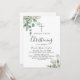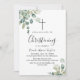 Célébrez un précieux moment avec ce faire-part de baptême élégant de milieu d'été. Mettre en valeur un design botanique luxuriant, il comporte de l'eucalyptus aquarelle magnifiquement peint et des feuilles vertes verdoyantes, créant un look frais et intemporel parfait pour une dédicace de bébé sincère.
