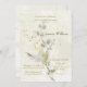 Célébrez un moment sacré avec cette carte de baptême élégante représentant une colombe blanche douce entourée d'éléments botaniques dorés et argentés sur un fond texturé crème.