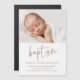 Cette invitation de baptême bébé photo moderne présente un art de baptême avec écriture calligraphiée manuscrite qui est déplaçable et dont vous pouvez facilement changer la couleur, une photo horizontale et un texte modifiable. Cliquez sur le bouton modifier pour personnaliser ce design.
