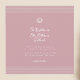 Un faire-part de baptême carré classique mais moderne en rose poudré avec des rayures subtiles en haut et en bas, une coquille peinte à la main avec une croix, et une police de caractères script douce pour un look élégant et significatif.