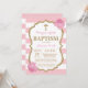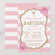 Faire-part de baptême pailleté rose et or. Baptême de fille. Première communion. Baptême. Dédicace de l'enfant. Rayures roses et blanches. Fleur florale rose. Pour une personnalisation plus poussée, veuillez cliquer sur le bouton "Personnaliser" et utiliser notre outil de conception pour modifier ce modèle.