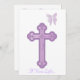 Faire-part de baptême pour une nouvelle vie ! Une transformation spirituelle céleste. La croix violette de Jésus prend la tête de la sainteté de l'occasion. Un papillon violet symbolisant la transformation de l'âme. Personnalisez pour une entrée dorée dans cet événement spécial. Personnaliser.