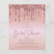 Une alternative papier économique. Les enveloppes sont une option supplémentaire. De faux reflets pailletés glamour en bordure rose gold bordent le bord supérieur des deux côtés. Bridal Shower est écrit dans une police moderne et stylisée dans une teinte coordonnée et le reste du texte peut être facilement personnalisé.